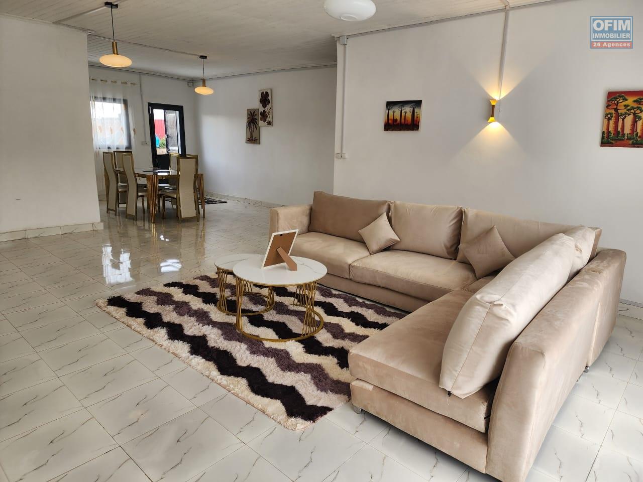OFIM Immobilier propose en location saisonnière ou longue durée un appartement T4 neuf, moderne et meublé, idéalement situé à Soavinarivo Ivato, à seulement 5 minutes de l’aéroport international.