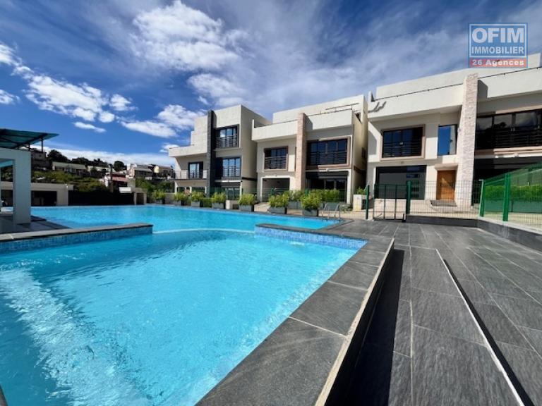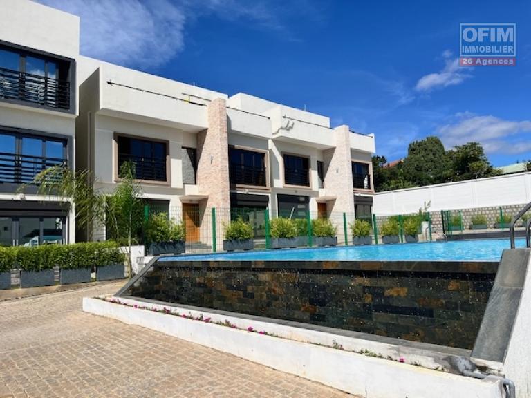 OFIM Immobilier vous propose à la location un ensemble de trois villas neuves et mitoyennes avec piscine, situées dans le quartier calme d’Ambatobe.