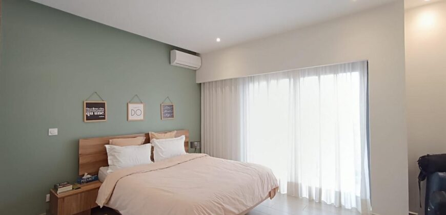 L’appartement dispose de nombreux avantages tels que des pièces climatisées, un ascenseur, un groupe électrogène, une réserve d’eau avec surpresseur et un parking couvert sécurisé. L’immeuble est sécurisé 24h/24 et 7j/7, et son accès est facile.