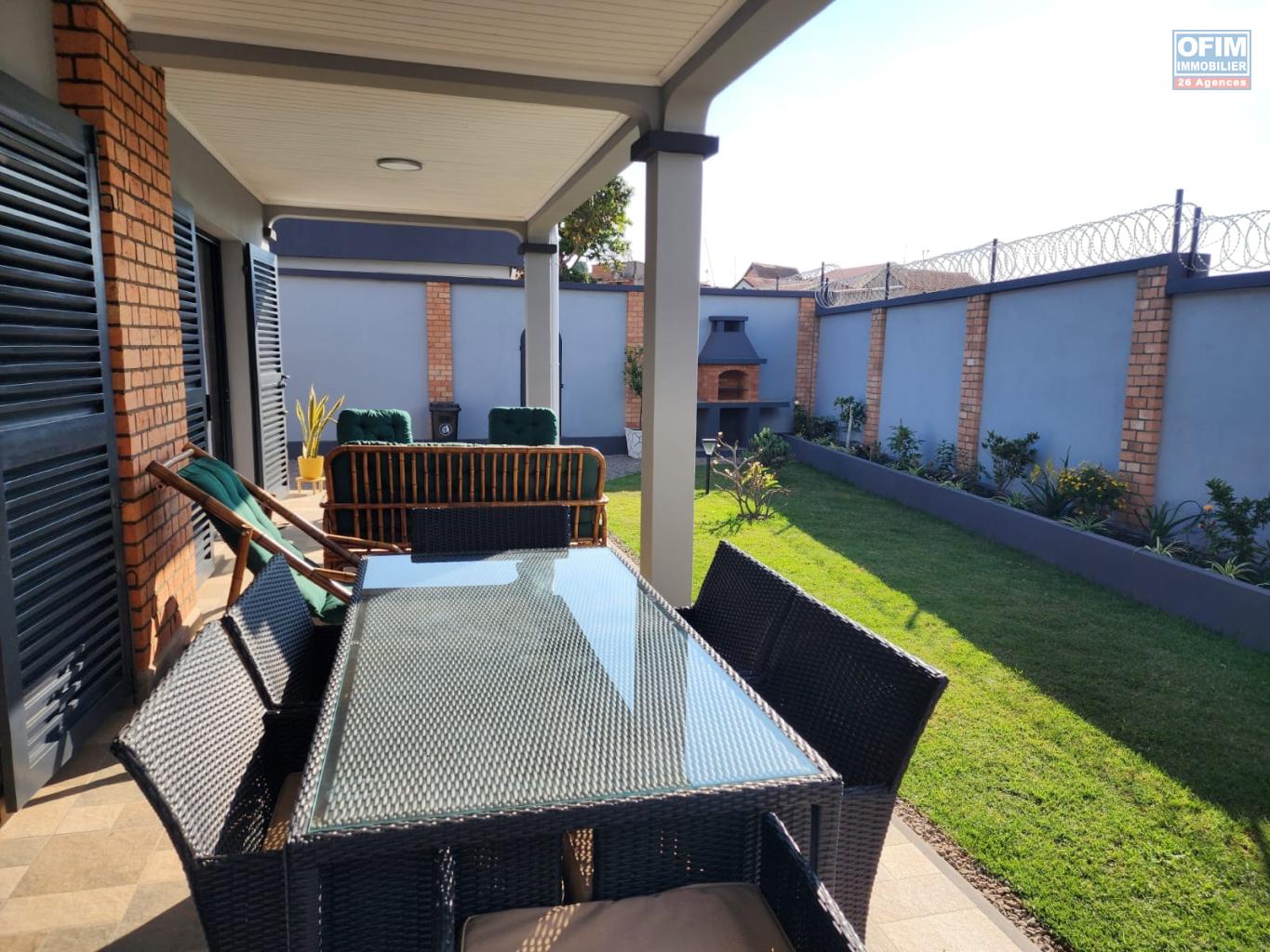 OFIM Immobilier vous propose à la location une belle villa basse neuve meublée de type F3, située à Ivato Morarano (Ankadindravola), à seulement 10 minutes de l’aéroport, dans un environnement calme et facilement accessible.