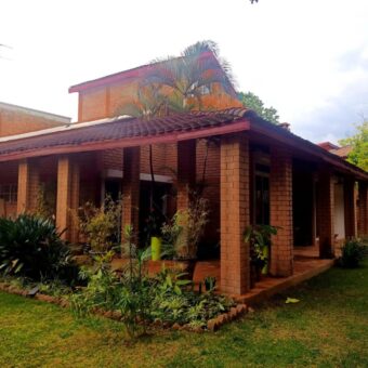 À l’extérieur, un charmant jardin paysager entoure la maison, une cour aménagée permet de stationner jusqu’à quatre véhicules, et un garage fermé est également à disposition. Une dépendance pour le gardien complète l’ensemble.