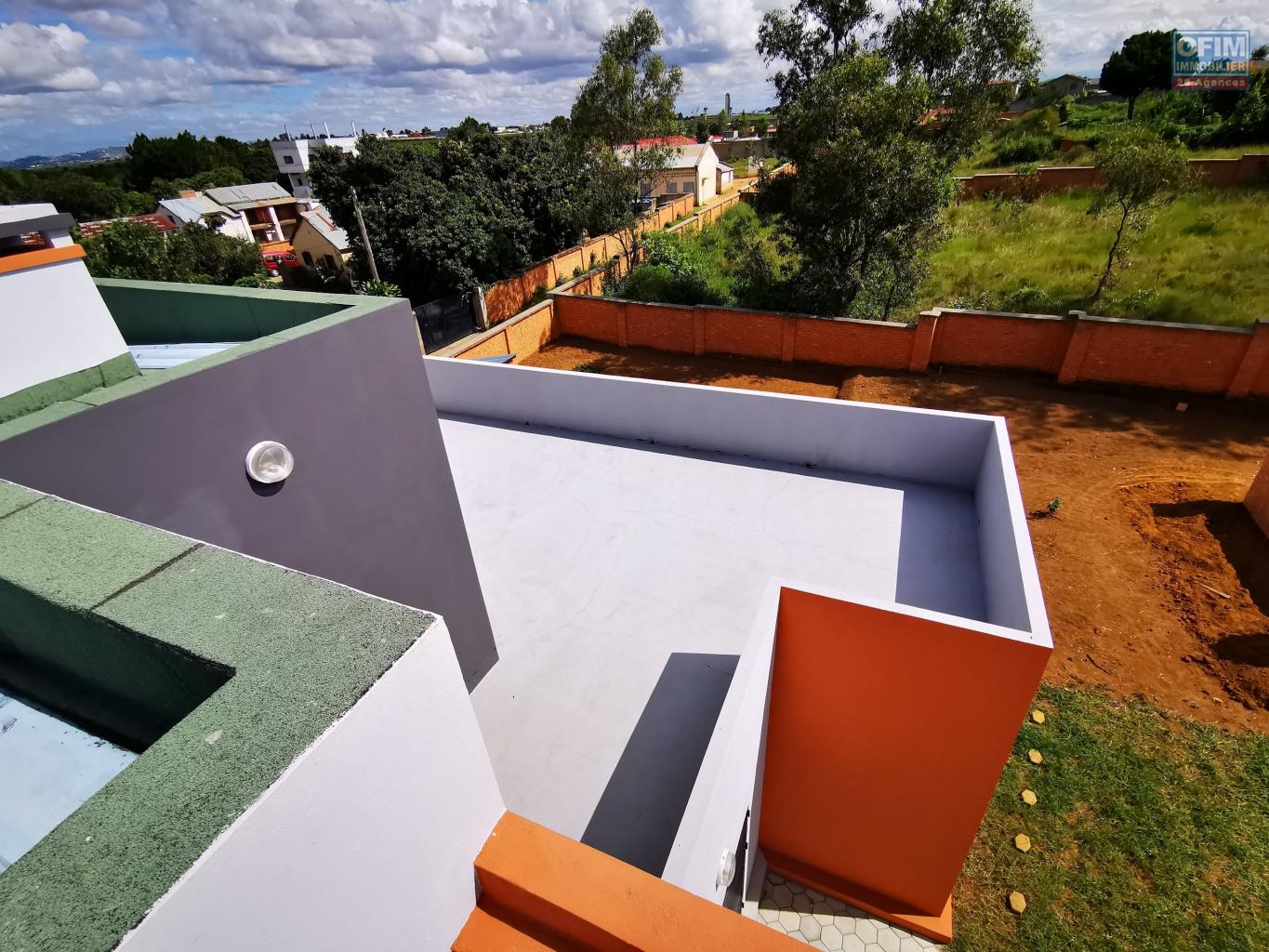 OFIM Immobilier vous propose à la location une villa moderne à étage de type F4, implantée sur un terrain de 700 m² dans un quartier calme et facilement accessible à Ivato.