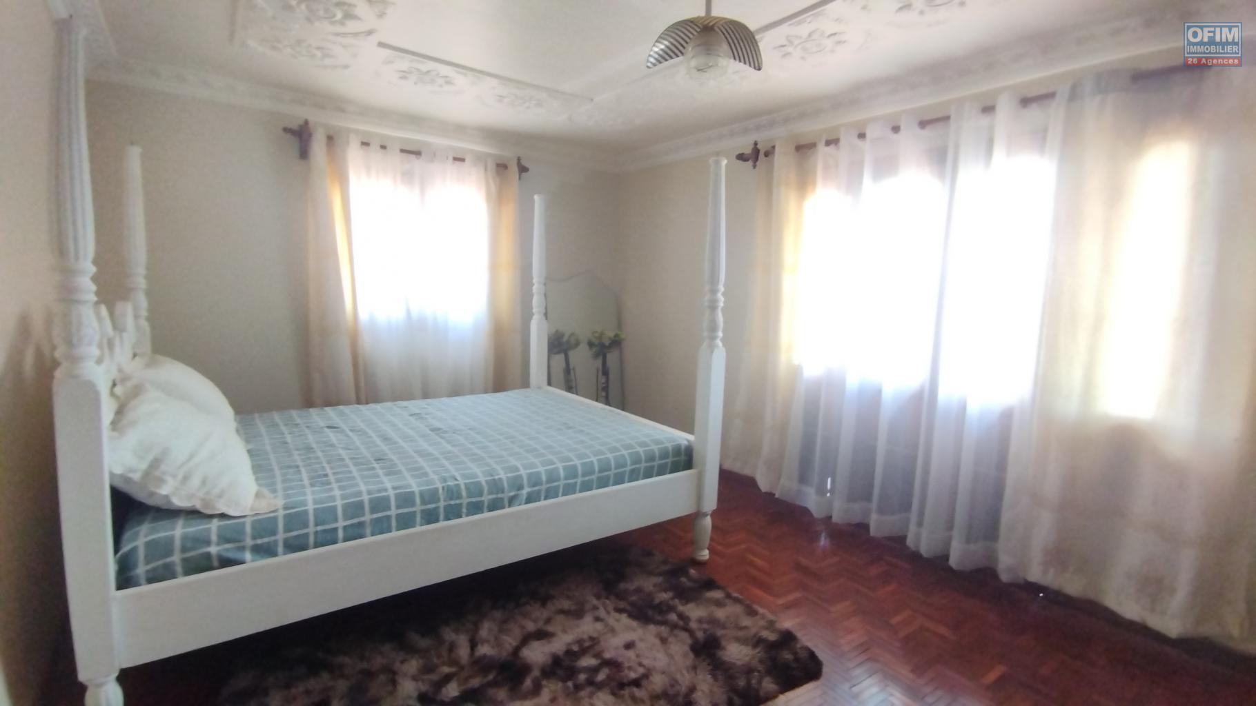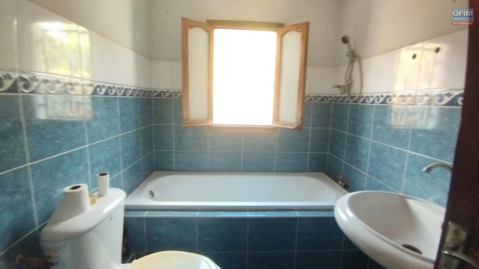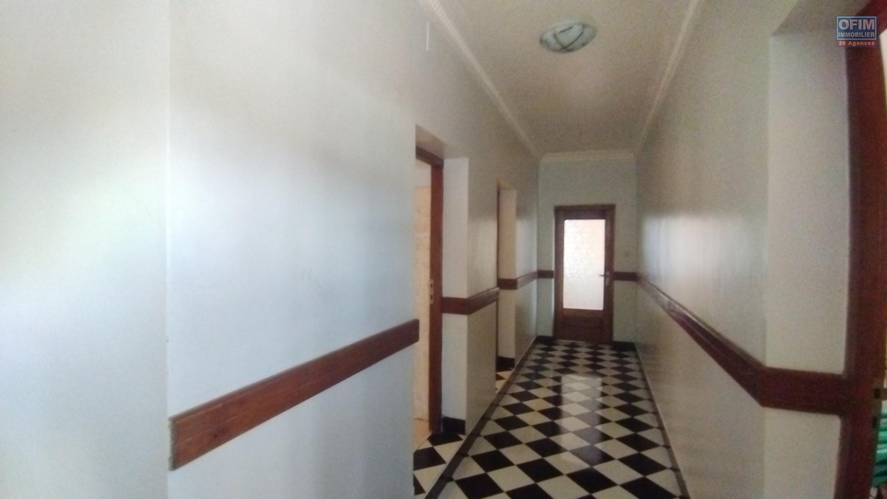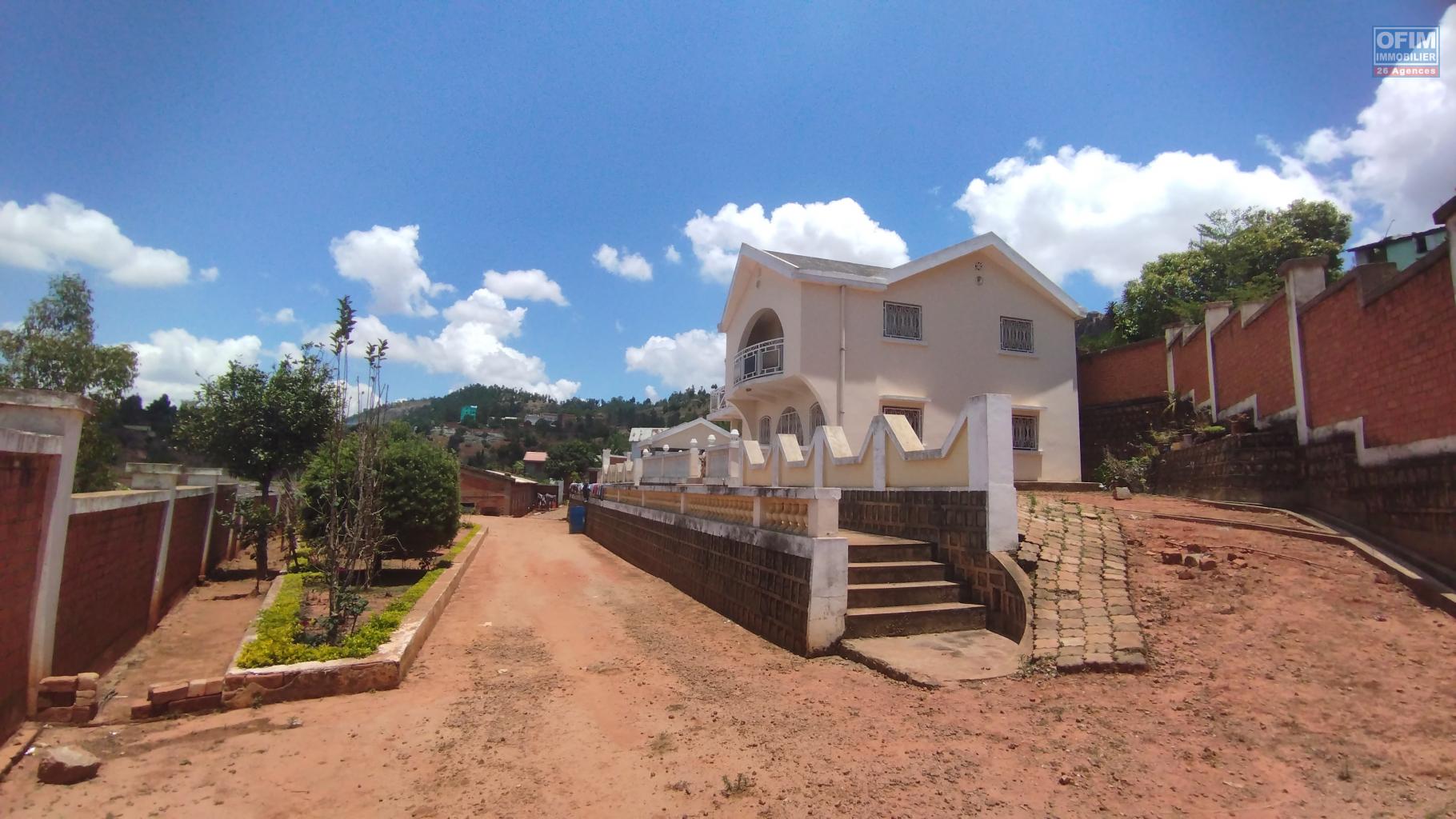 Elle comprend une maison principale F5 à étage offrant au rez-de-chaussée un salon, une cuisine, une douche, un bureau ainsi qu’une terrasse avec une vue dégagée sur le lac Iarivo. À l’étage se trouvent trois chambres et une salle d’eau supplémentaire. La propriété dispose également d’un hangar de 100 m², anciennement utilisé comme poulailler, pouvant être réaménagé pour tout autre projet. Une surface de 300 m² est déjà prête à bâtir pour accueillir une nouvelle construction. Le tout est situé dans un quartier calme.