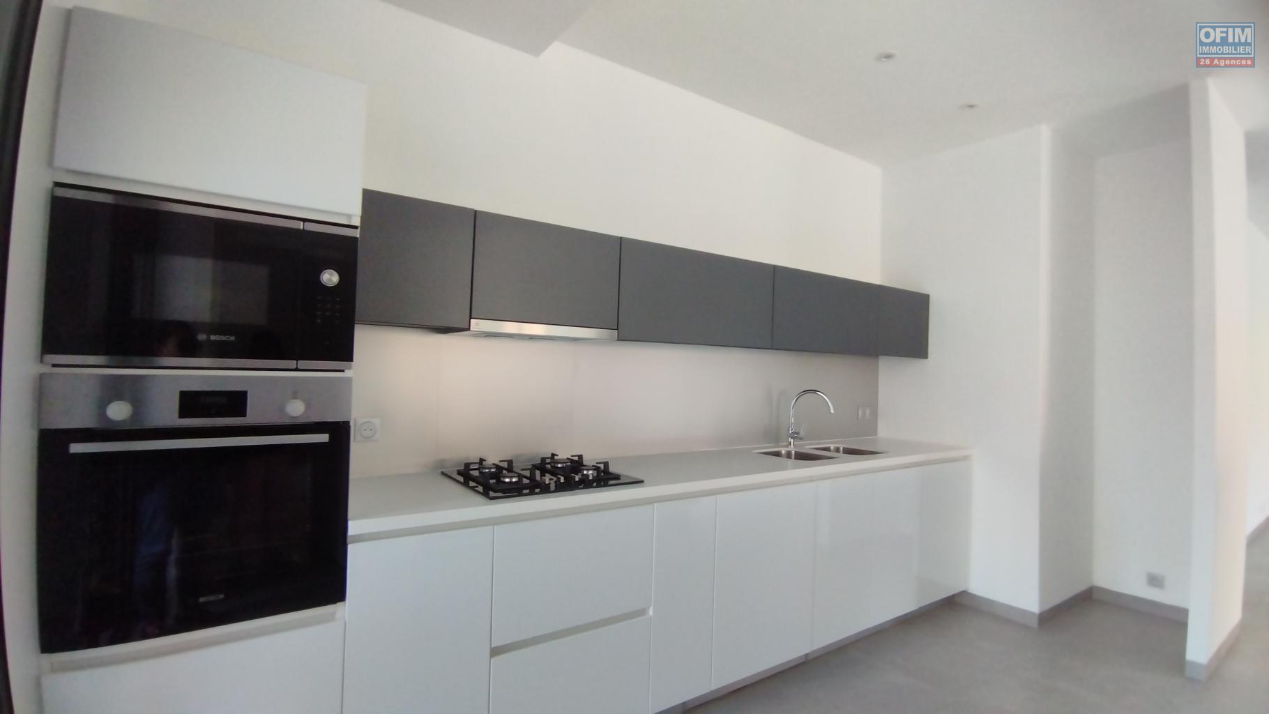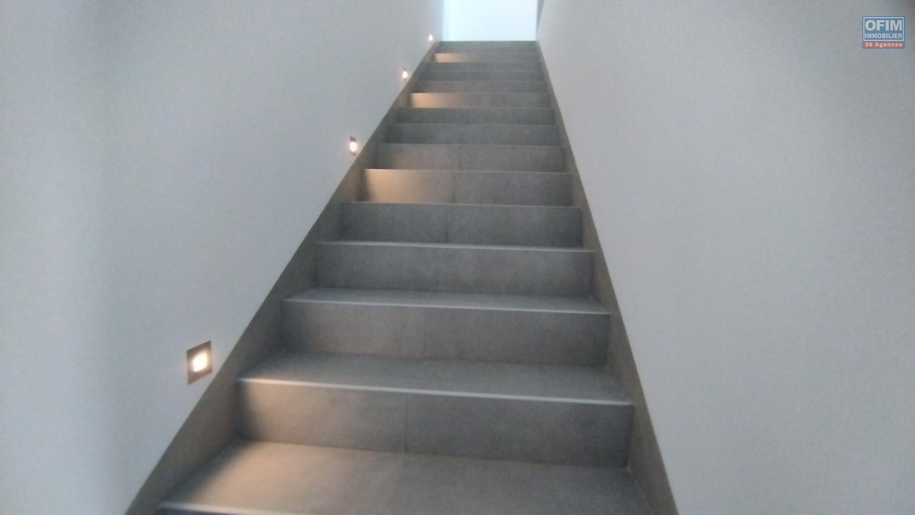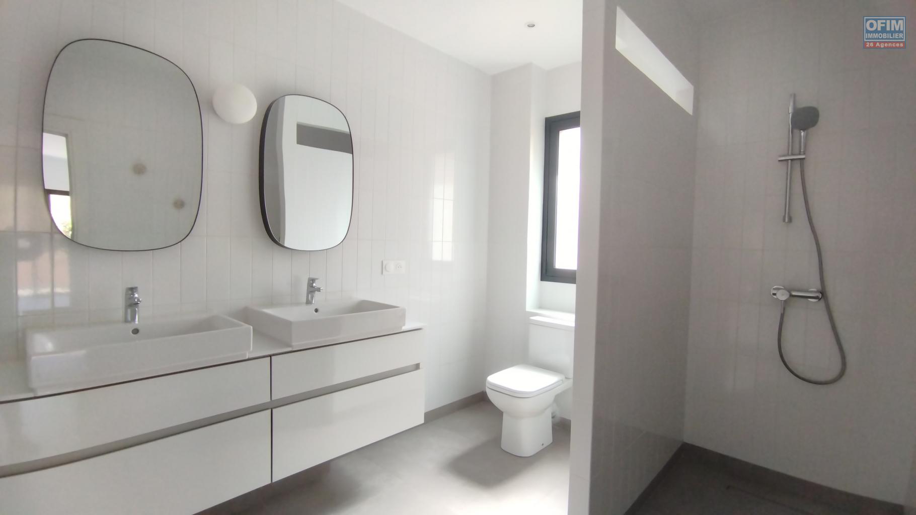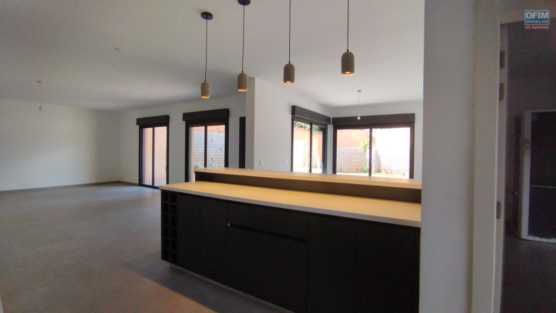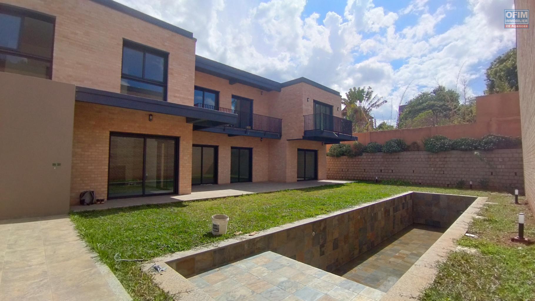 OFIM Immobilier vous propose à la location une magnifique villa F4+ neuve avec piscine, idéalement située à Ambatobe, à seulement cinq minutes à pied du lycée français.